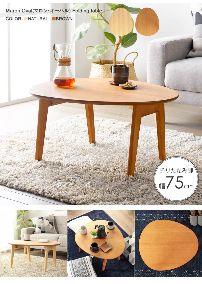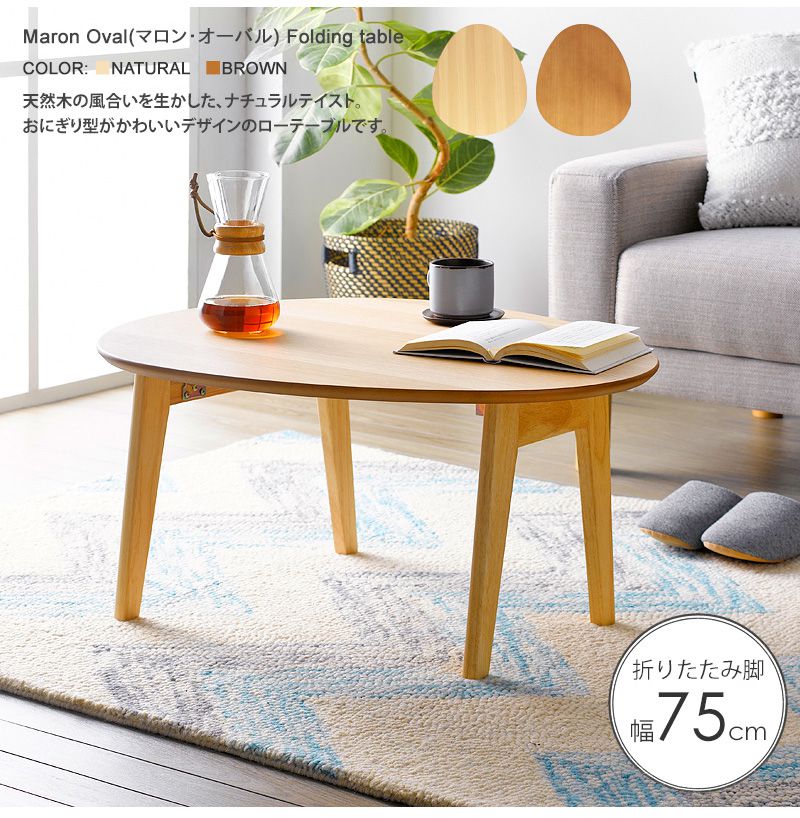 ローテーブル 折りたたみ 木製 軽い 丸形 楕円 一人暮らし 幅75 小さめ 棚 リビング 勉強机 完成品 おしゃれ センターテーブル コンパクト 学習机 低め パソコン ソファ 机 勉強 テレワーク 在宅ワーク 食卓 折り畳み