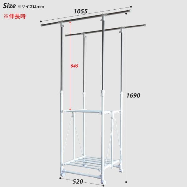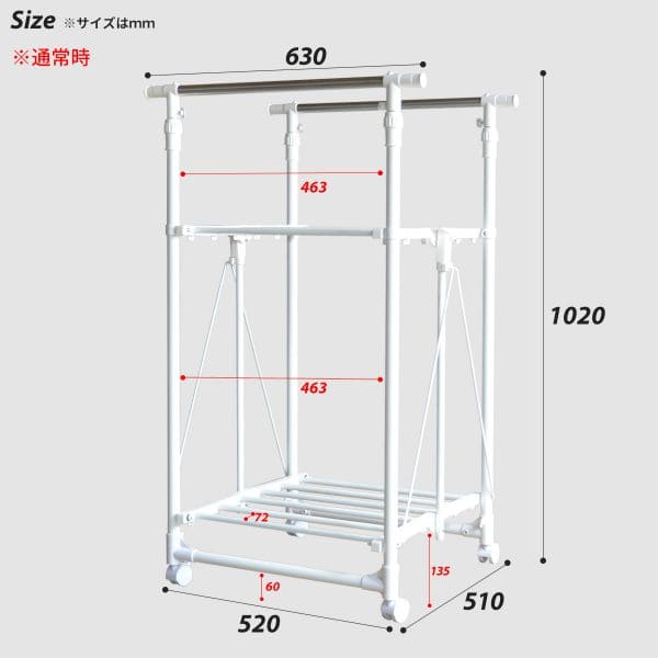 ■サイズ:幅63cm~幅105.5cm×奥行き51cm×高さ102cm~169cm