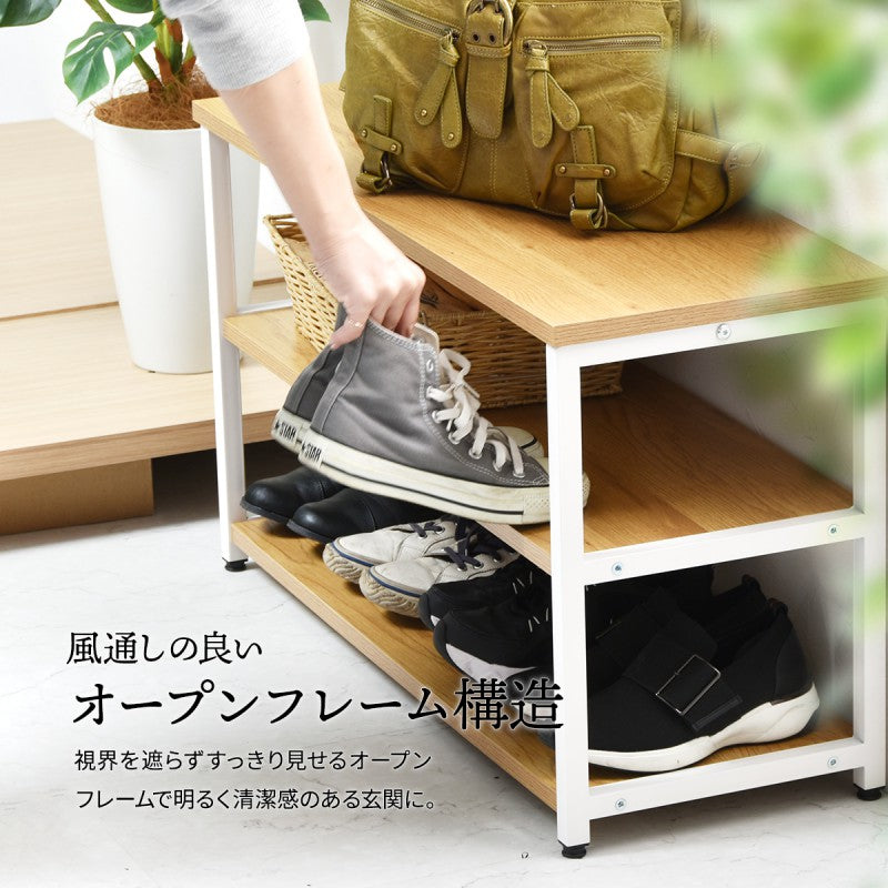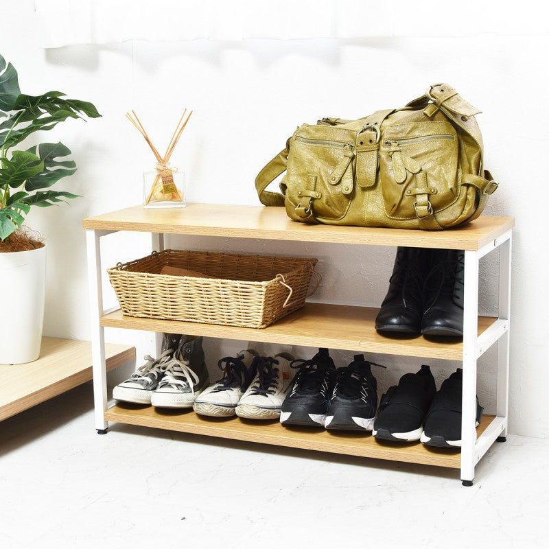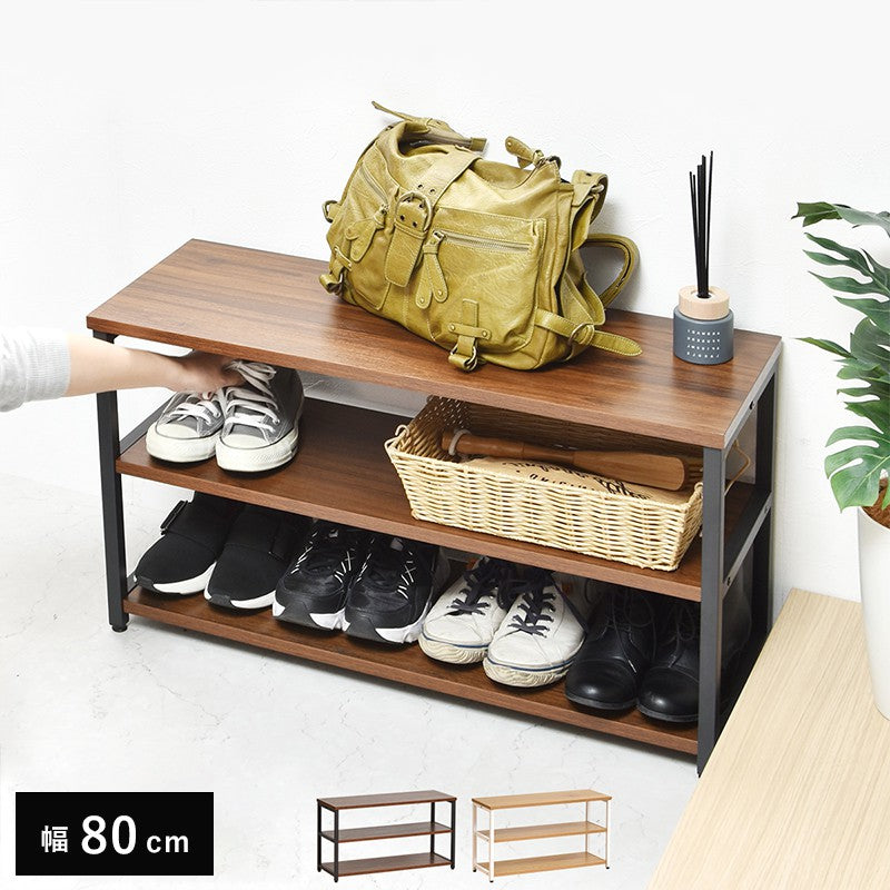 シューズラック 玄関ベンチ スリム 省スペース ベンチ 木製 シューズボックス 椅子 奥行30 幅80 アイアン 板 2段 狭い 玄関 薄型 玄関収納 棚 丈夫 おしゃれ 靴箱 下駄箱 靴収納 座れる ロータイプ 一人暮らし コンパクト