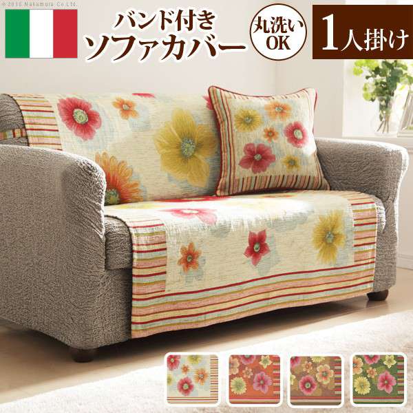 イタリア製 バンド付きソファカバー フィオーレ・1人掛 ソファカバー 1人掛け 肘なし
