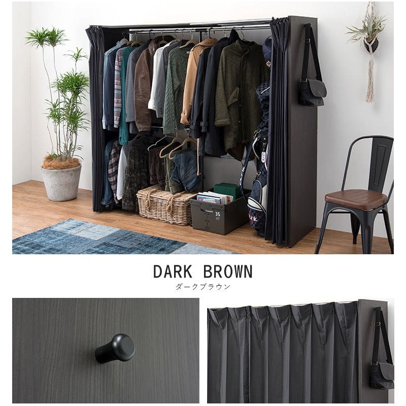 ワードローブ 収納 カーテン クローゼット 伸縮 大容量 大型 幅120 ハンガーラック スリム 高さ170 スリム 目隠し 置き型 おしゃれ 洋服 衣類 洋服掛け 伸縮式 スライド 薄型 アイアン スチール ダークブラウン 木製