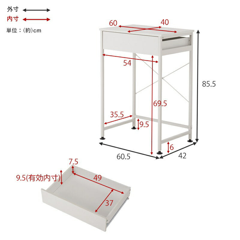 フレーム:スチール、天板:合成樹脂化粧繊維板(メラミン樹脂)