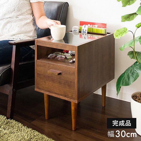 サイドテーブル テーブル 木製 北欧 ベッド ガラス スリム 引き出し おしゃれ 収納 ソファ 低い 小さめ シンプル ソファテーブル 完成品 幅30