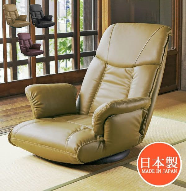 座椅子 レザー ハイバック リクライニング レバー式 肘置き 回転 腰痛 おしゃれ 日本製 ソファ 回転座椅子 ロータイプ 肘掛け 高齢者 大きい 低い ワイド 丈夫 高級 国産 こたつ リビング 和室 年配 老人 回る 頭まで 楽