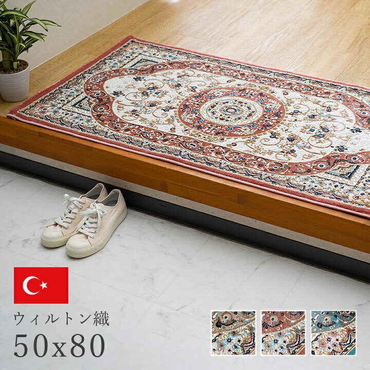 玄関マット 室内 50 80 大きめ ウィルトン織 開運 風水 ラグ ウィルトン 50×80 トルコ 高級 北欧 ウィルトン織り 玄関 マット おしゃれ 屋内 大判 高級感 北 西 東 南 かわいい ウィルトン織りマット ポリプロピレン エントランスマット ラグマット 夏 冬 薄型 ブルー