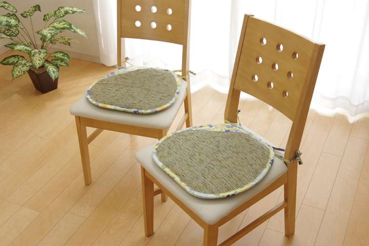チェアパッド 座布団 クッション 丸形 40 紐付き 座る用 椅子用 おしゃれ 椅子 北欧 子供 椅子用クッション 丸 オフィス 和風 い草 2個 セット