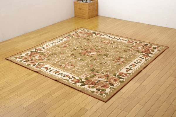 ダイニングラグ カーペット 撥水 冬 洗える ラグ 江戸間 10畳 ダイニング おしゃれ 花柄 薔薇 ラグマット 冬用 撥水加工 洗濯 防音 絨毯 北欧 オールシーズン 花 バラ 冬用ラグ 冬用カーペット じゅうたん 激安 安い 洗えるラグ 正方形 ダイニングカーペット 352×440