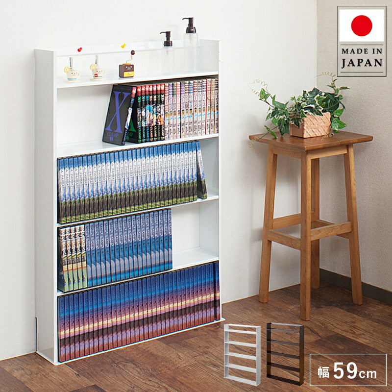 本棚 コミックラック 薄型 大容量 スリム 4段 壁面 日本製 幅60 省スペース 収納 ロー 棚 文庫 漫画 見せる収納 コミック ロータイプ おしゃれ マンガ 整理 コンパクト 超薄型 大量 低い シンプル 北欧 壁面収納 リビング