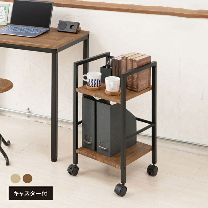 サイドワゴン ラック キャスター付き 木製 2段 スリム ワゴン 薄型 スチール デスク ロー コンパクト デスクワゴン 収納 a4 オフィス おしゃれ シェルフ ヴィンテージ テーブル 低め 移動 アイアン デスク横