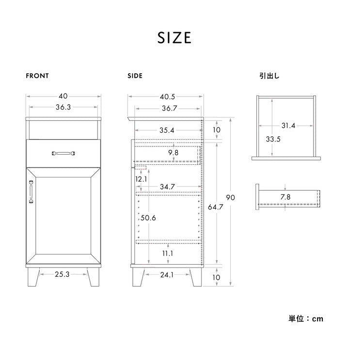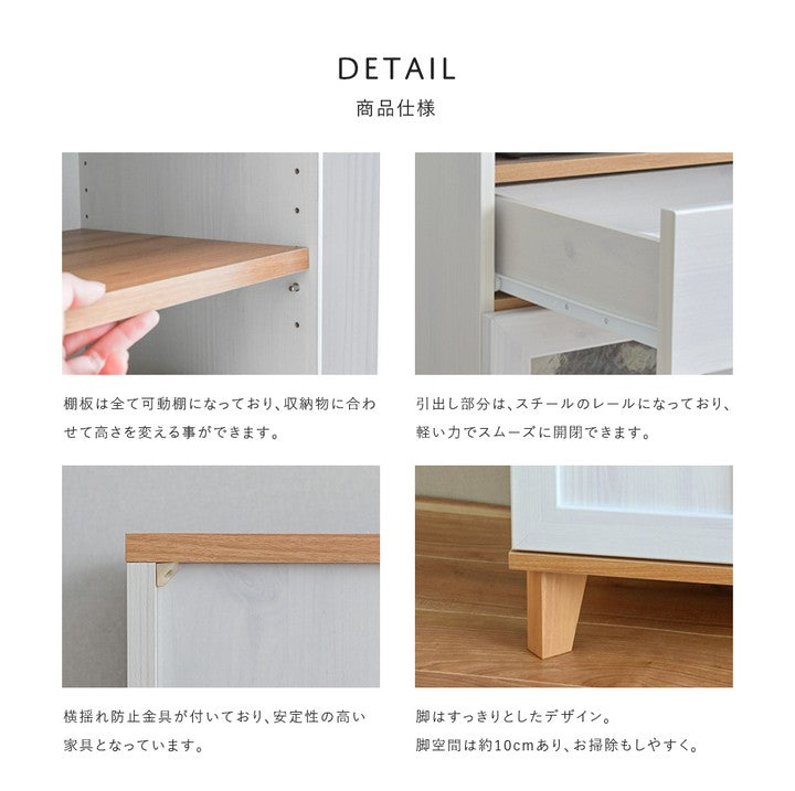 耐荷重 | 天板:約20kg 棚板:約7kg 引出し:約5kg |