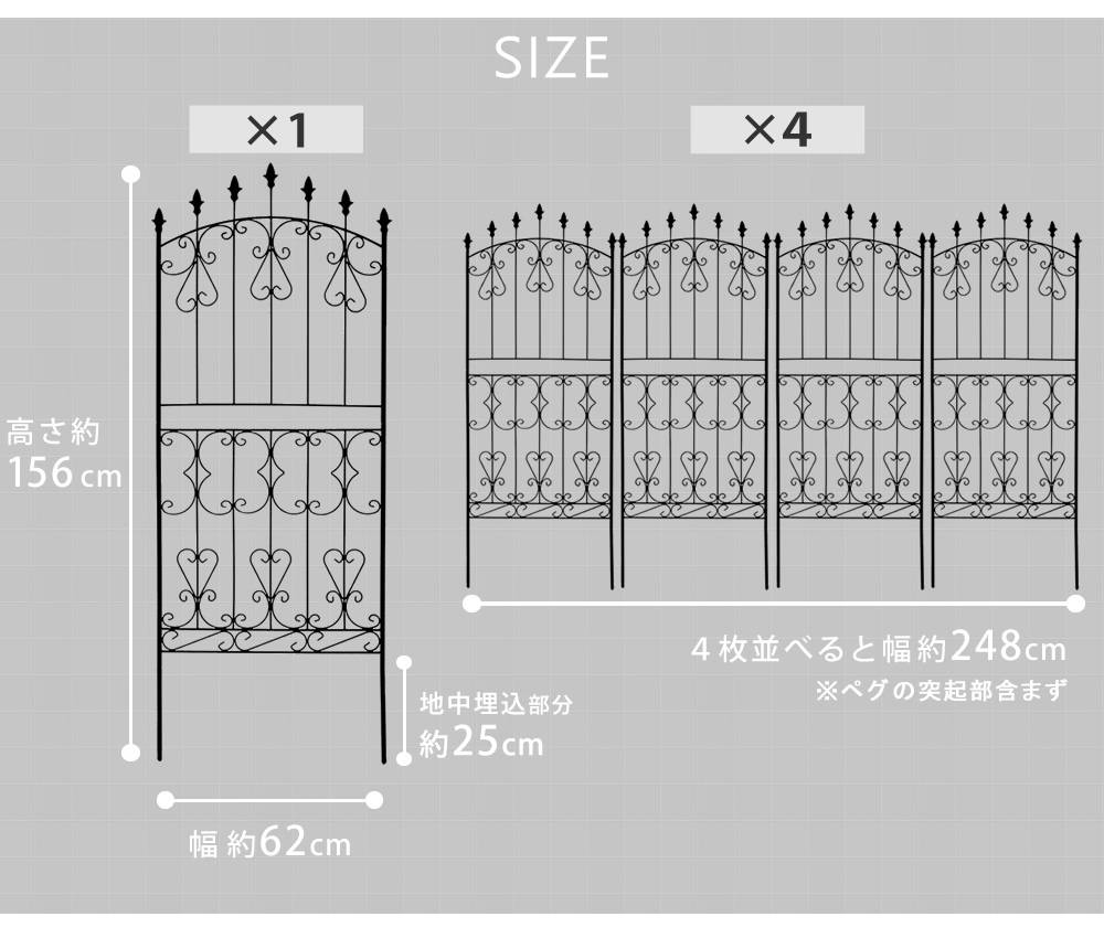 フェンス 屋外 アイアン ガーデンフェンス ガーデニング 庭 簡単 アイアンフェンス ガーデン アンティーク 柵 挿すだけ 埋め込み 150cm セット 白 おしゃれ 簡単取り付け 簡単設置 本体 園芸 鉄 つる性植物 バラ 誘引 隣家