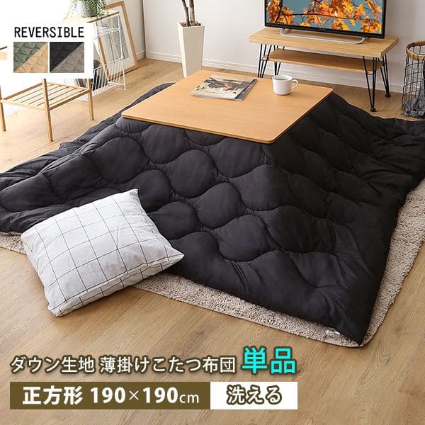 こたつ布団 正方形 洗える 撥水 リバーシブル 薄掛け 無地 大判 綿 キルティング 洗濯 薄手 ポリエステル 190×190 おしゃれ こたつ掛け布団 クッション こたつ 掛け布団 シンプル 一人暮らし こたつテーブル 保温 軽量 コタツ 温める 炬燵布団