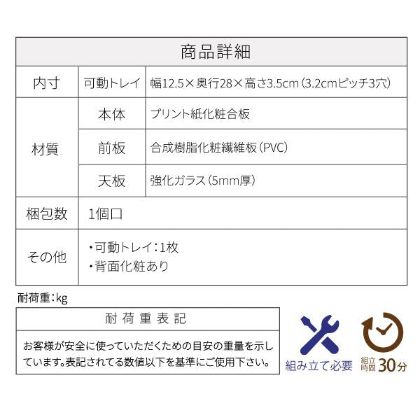 (可動トレイ)幅12.5×奥行28×高さ3.5cm(3.2cmピッチ3穴)