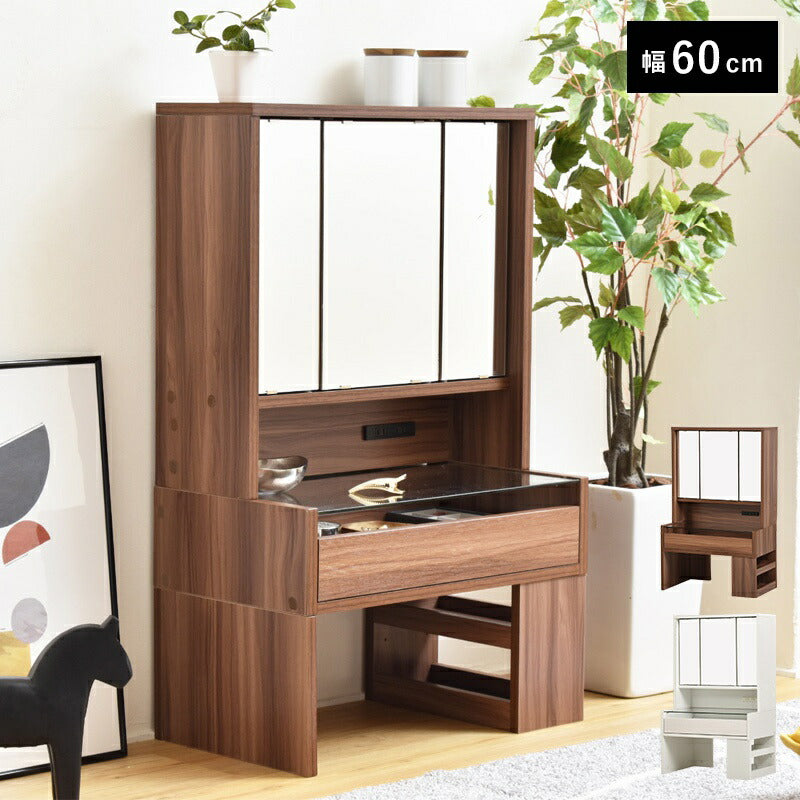 ドレッサー 三面鏡 収納 コンパクト 白 2つ口コンセント 幅60 デスク 鏡 スリム 3面 棚 ロータイプ 化粧台 薄型 大容量 木製 ミラー 可動式 姫系 おしゃれ 三面鏡ドレッサー 北欧 コンセント リビング 3面鏡 大きい 姿見