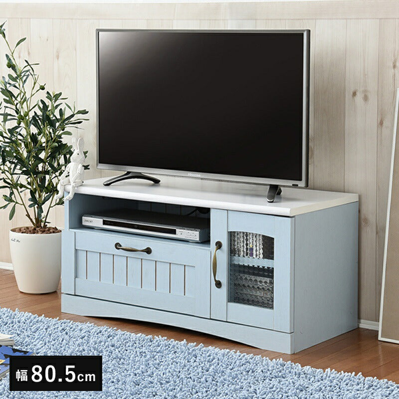 バイカラーで魅せるフレンチカントリースタイルのテレビ台。コンパクトサイズなので一人暮らしにも最適。AV機器収納から、DVDなどのメディアの収納にも最適な引出し、扉収納もあります。丸みを帯びたフォルムと、アンティーク調の取っ手といったディテールがカントリーテイストを漂わせます。