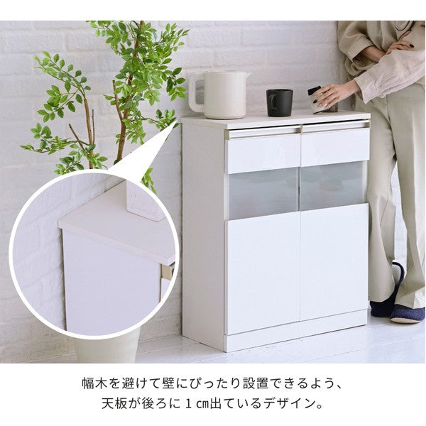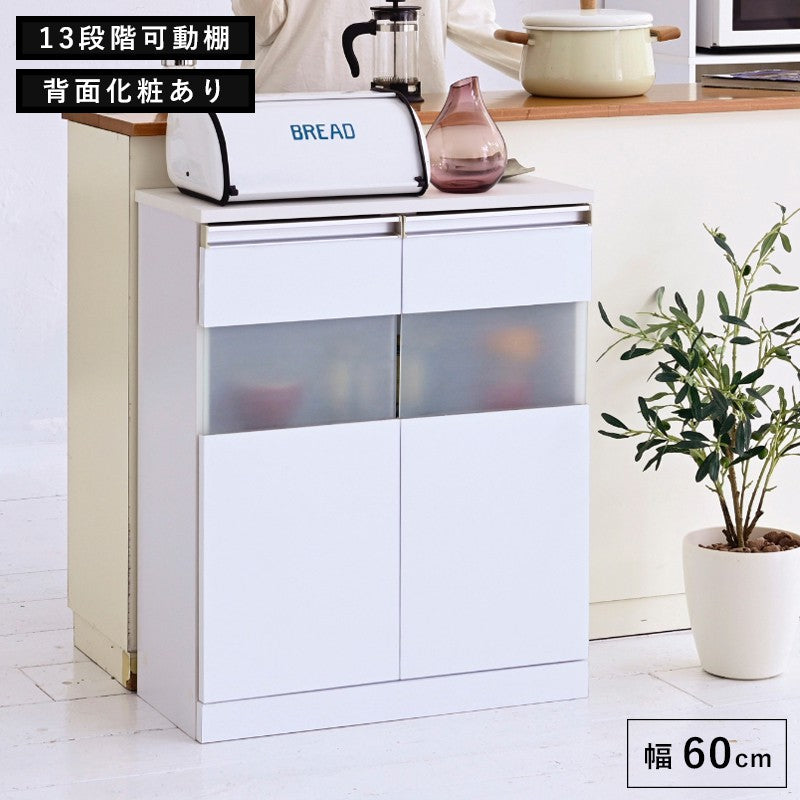 キャビネット 白 サイドボード ホワイト コンパクトキャビネット カウンター下収納 ガラス 扉 付き 薄型 ロータイプ 幅 60 リビング収納 木製 ボックス 鏡面