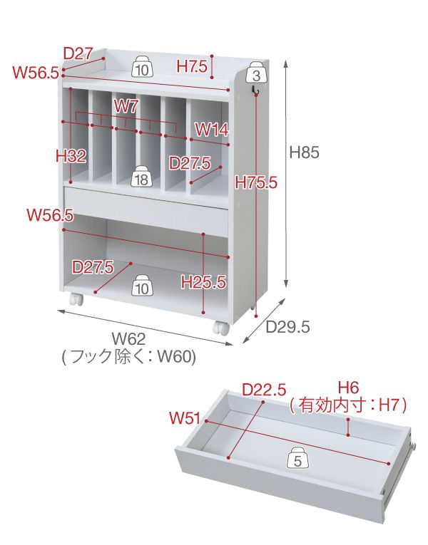 (整理棚各部)幅7×奥行27.5×高さ32cm