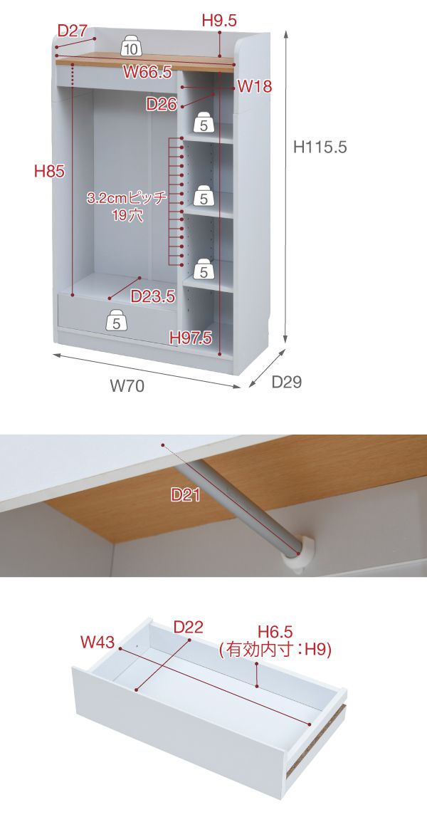 ラック 棚 幅70 キッズ 子供 ハンガー 木製 収納 スリム 北欧 低い デスク横 奥行30 本棚 4段 可動 ロータイプ 引き出し 洋服 天板付き 低め 壁面 おしゃれ ハンガーラック 絵本 おもちゃ 子供部屋 シェルフ 洋服掛け 服