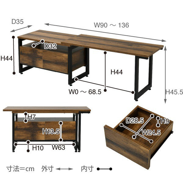 [外寸]幅90~136×奥行35×高さ45.5cm