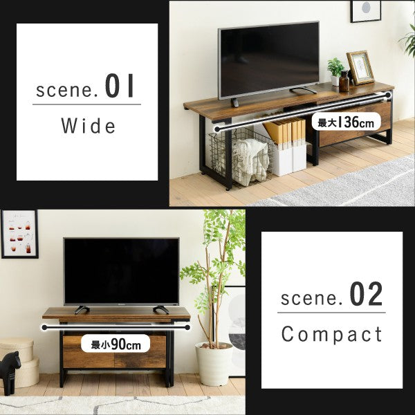 伸縮テレビ台 インダストリアル 幅90 130センチ 40インチ ヴィンテージ加工 おしゃれ 収納 ブラックブラウン コンパクト ワイド 高さ45 木製 スチール elvis